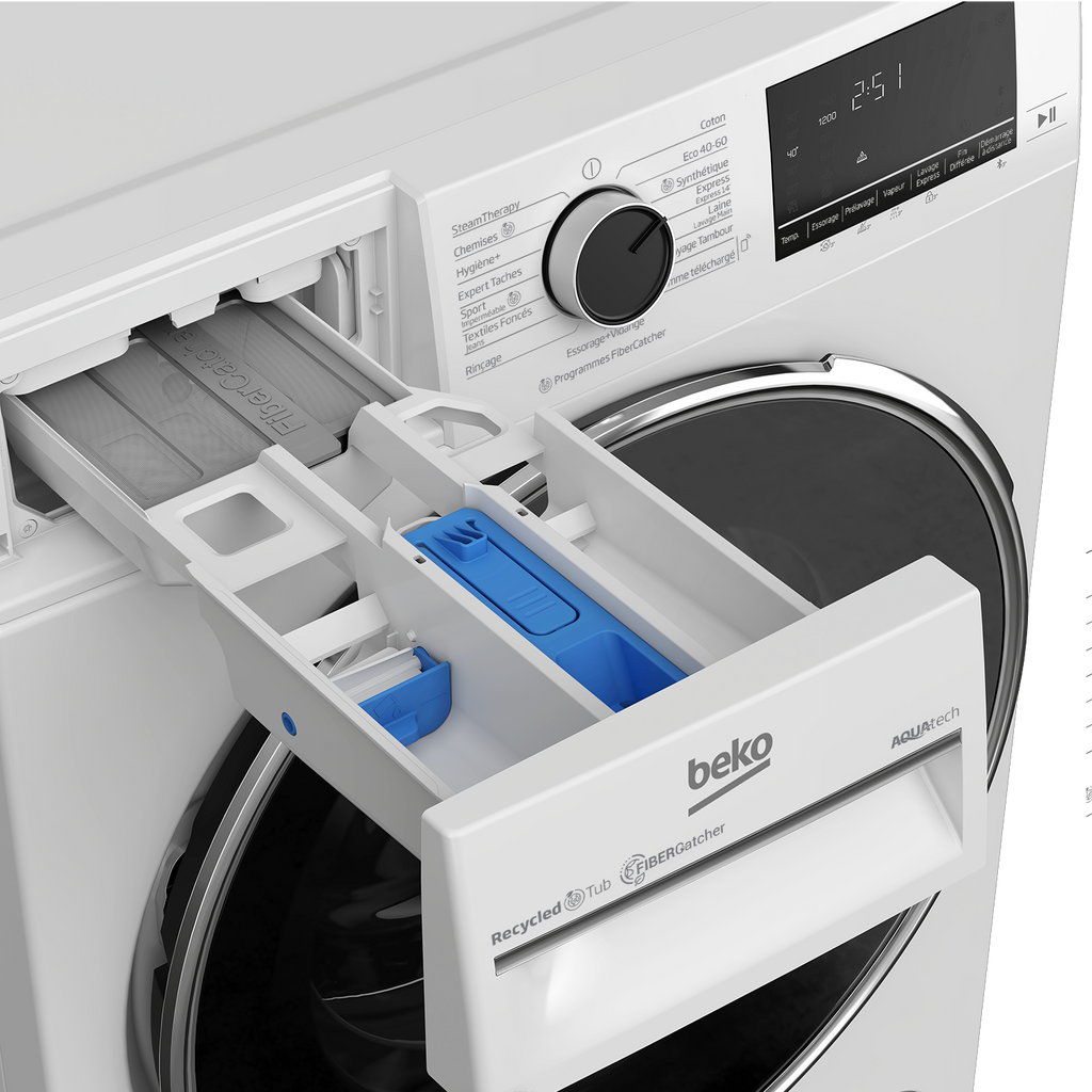 La technologie FiberCatcher retient jusqu’à 90 % des microfibres libérées pendant le lavage, limitant leur impact sur la nature. Sa cartouche filtrante est fabriquée à 98 % de matières recyclées. Agissez concrètement pour réduire la pollution des océans !