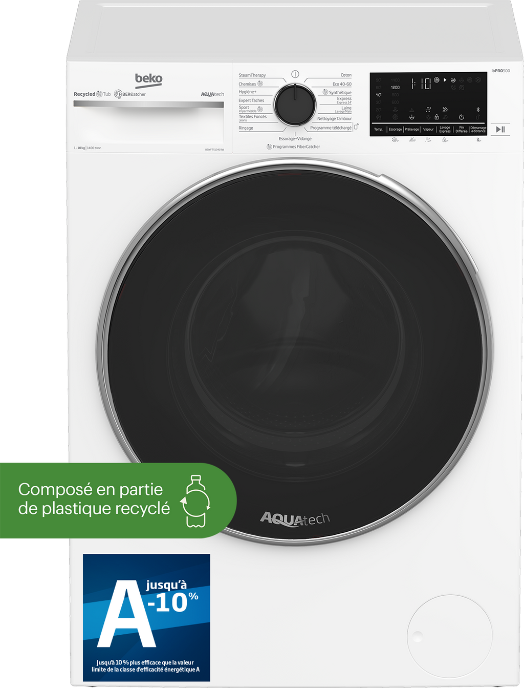 La technologie AquaTech projette une cascade d’eau sur le linge, améliorant la pénétration de la lessive et réduisant les frottements. Moins de rotation du tambour, pour un lavage plus doux et une meilleure protection de vos textiles au quotidien.
